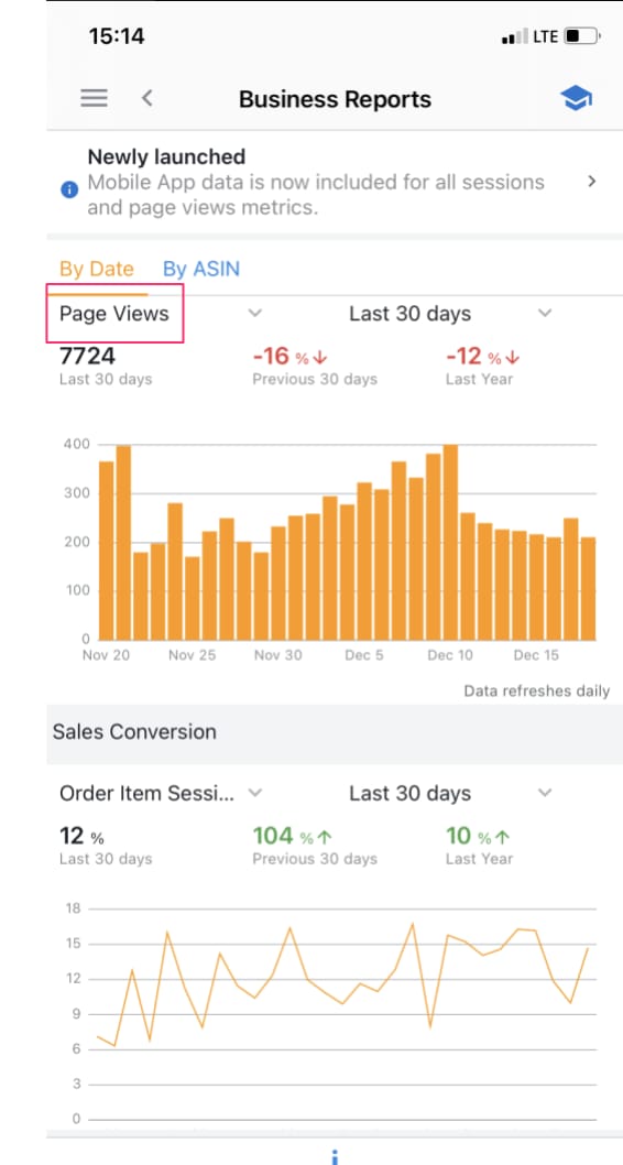 There is also new mobile app data added to the business reports that allow you to see page views and ordered item %s by date or ASIN.