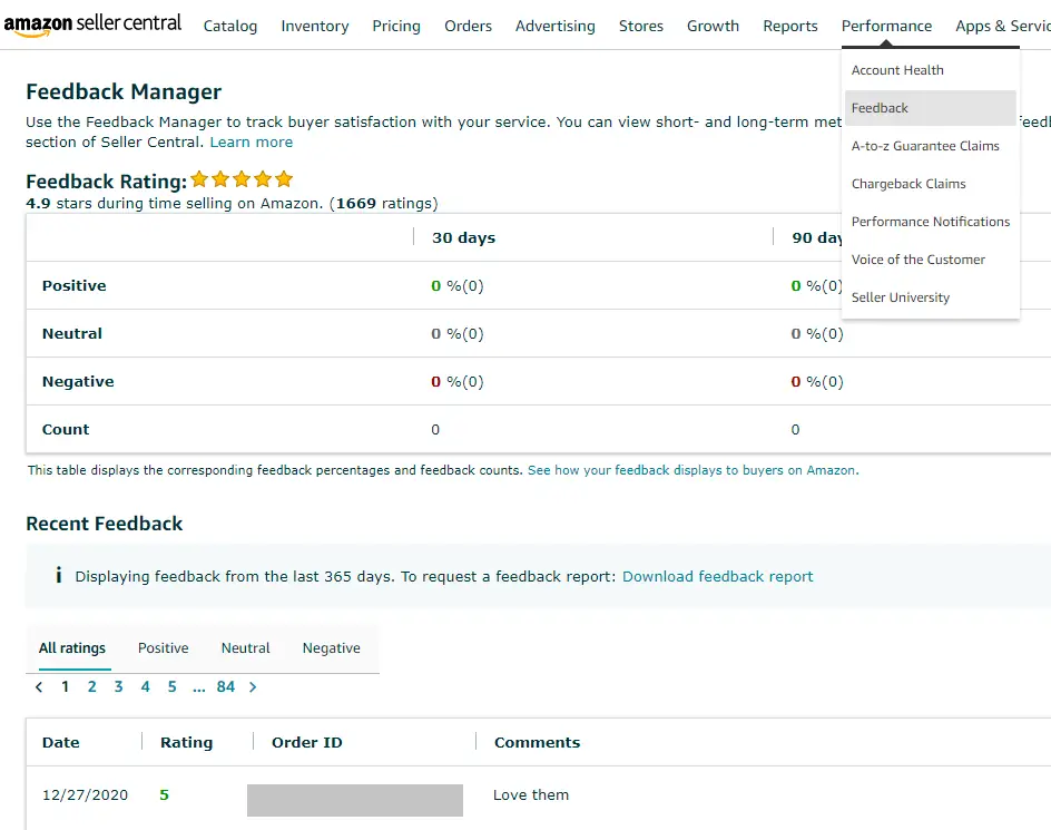 One of the metrics you should be monitoring is your Average Feedback Rating which is based on the feedback you’ve received over the last 12 months. If you want to remain highly competitive for Buy Box shares, you’d want to maintain a feedback rating of at least 95%.