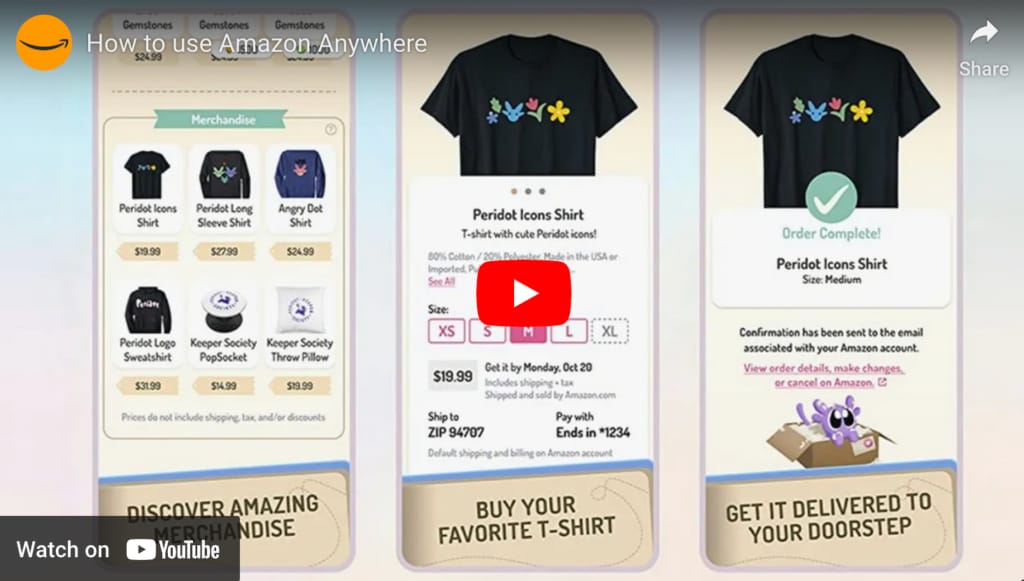 Players can connect to their Amazon account and shop for Peridot-branded products without having to leave the game.