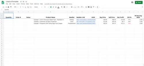 If you are manually sourcing yourself (which we also highly recommend learning the process), you’ll need somewhere to store your leads for further analysis. If you are at a point where you are hiring virtual assistants to find leads for you, then you’ll need a document where they can also store lead information that they find. This document is usually passed to the buyer (or you) daily for further analysis and purchase. Delegating the task of sourcing created a huge leap forward in the automation of our business models.